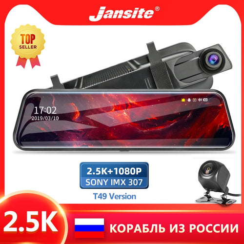 Jansite 10 inches Touch Screen 2.5K Car DVR stream media Dash camera Dual Lens Video Recorder Rearview mirror 1080P Rear camera